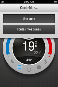 Chauffage : un thermostat très très beau permettant de gérer des zones différentes ayant chacune leurs températures (consigne de jour, de nuit, hors gel… différentes si l’on veut). Possibilité en 2-3 clics de forcer le fonctionnement pendant une durée souhaitée puis retour au mode automatique.