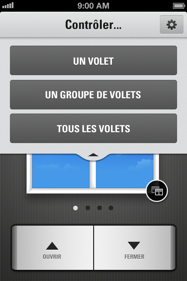 Volets : Application permettant de piloter les volets roulants. L’image de fond sera différente s’il fait jour ou s’il fait nuit dehors 🙂