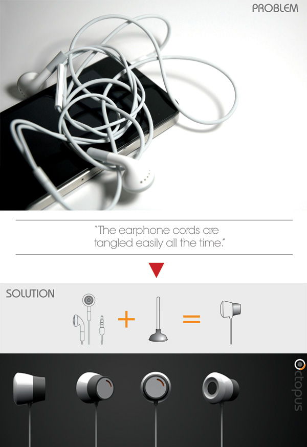 Inspiré par les ventouses qui recouvrent les tentacules des pieuvres, le designer Donghee Suh a créé cette paire d’écouteurs fort agréables car faciles à dompter.