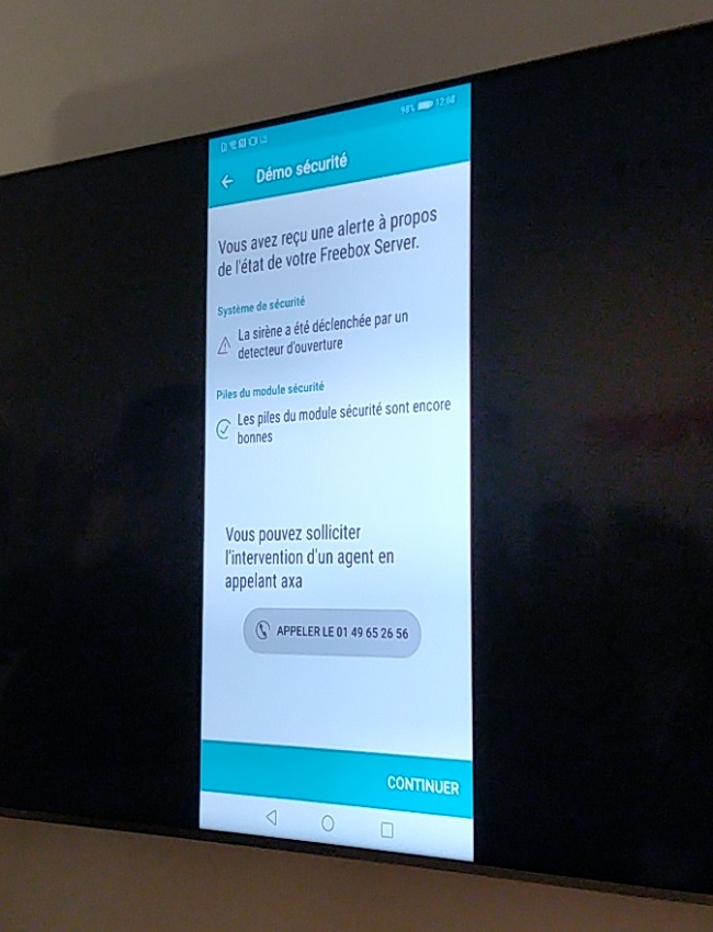 La centrale d’alarme est le boitier Server. Il intègre un module Sécurité qui inclue une batterie de secours, une sirène 105 dB ainsi qu’une connectivité Sigfox. Avec ces éléments La Freebox peut transmettre l’alerte même en cas de coupure de courant ou de réseau Internet. De manière classique il est possible de visualiser les images de la caméra sur sa TV ou sur son smartphone.