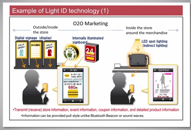Panasonic a donc développé une technologie permettant d’utiliser une LED comme source de lumière permettant à tout smartphone de capteur l’information ainsi transmise et de comprendre les signaux optiques communiqués. Cette manière de transmettre l’information concerne tous types d’informations. Les LED peuvent aussi bien équiper des systèmes d’éclairages qu’être veux qui composent les écrans d’affichages.