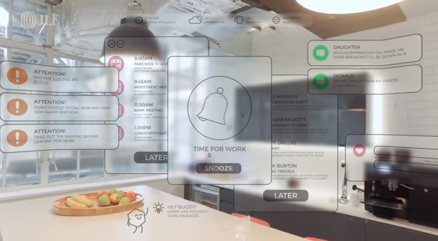 En prenant toutes les technologies qui émergent aujourd’hui et en extrapolant un peu, le spécialiste en immobilier JLL nous propose sa vision des conditions de travail qui nous attendent dans 15 ans. On y retrouve les interfaces gestuelles et vocales. Parler et agiter ses bras tout seul dans la rue sera monnaie courante. On s’est bien adapté aux kit mains libre après tout. On y côtoie des assistants personnels virtuels dopés à l’IA et capable d’interagir avec nous comme le ferait naturellement un humain. On visualise notre monde avec, en sur impression, toute une foule d’informations qui nous permettent de le comprendre, d’être informés et de le manipuler virtuellement. Il faudra porter des lunettes de type Google Glass ou des lentilles connectées…