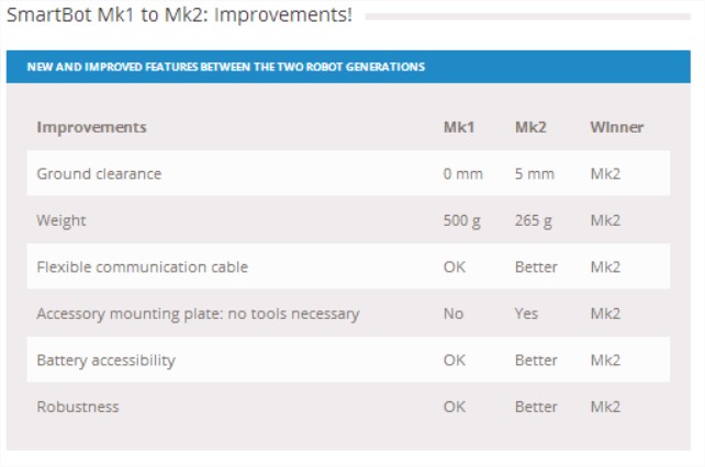 On le voit: le look a été entièrement revisité. Il ne faut pas se fier aux rondeurs plus importantes. Elles sont là pour lui apporter une meilleure tenue route et une robustesse accrue. Il a également perdu du poids. C’est pour lui permettre d’être plus agile et énergétiquement endurant. Il a gagné de nouvelles fonctionnalités. Par contre il a conservé son esprit d’origine qui consiste à proposer un objet robotique ludique et pédagogique à la fois.