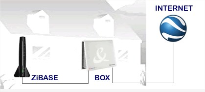 Pour fonctionner il faut donc connecter la Zibase à votre Box qui est elle-même connectée à Internet.